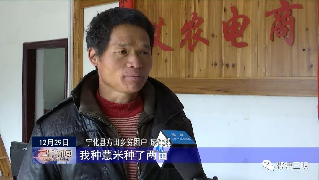 宁化县方田乡贫困户 廖仕球:“我种薏米种了两亩,卖去市场上只有13块一斤,现在扶贫站这边多2块钱一斤。就可以卖到15块一斤。”