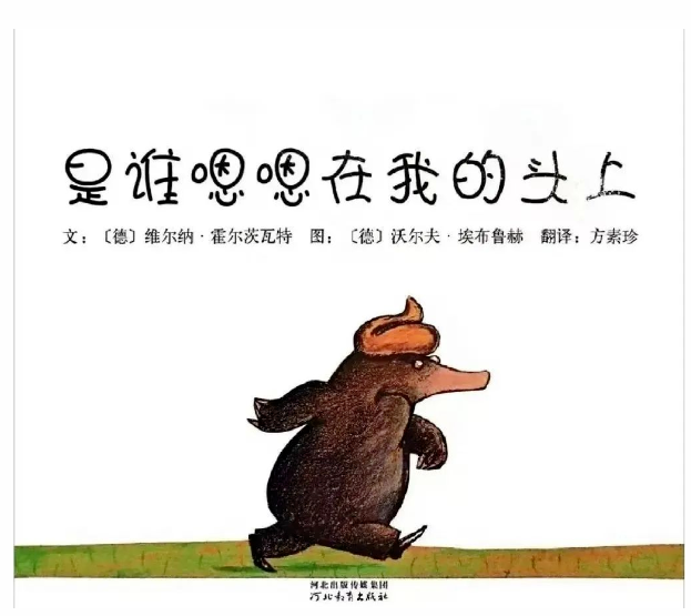 一只小鼹鼠从地下伸出头来晒太阳的时候一坨“嗯嗯”掉在它的头上,它火冒三丈却不知道是谁惹的祸,于是小鼹鼠大胆的去求证寻找祸主的故事,故事中小鼹鼠依次向鸽子、马先生、野兔、羊、奶牛、猪先生询问:“是不是你嗯嗯在我的头上”,小动物们一一向小鼹鼠展示了自己的便便,用事实证明不是自己干的坏事。正当小鼹鼠一筹莫展不知道该怎么办的时候遇见了两只又大又肥的苍蝇,在苍蝇的帮助下小鼹鼠立马知道了罪魁祸首是大狗,小鼹鼠终于可以甩掉头上的负荷啦。最后,小鼹鼠去找大狗“复仇”,掉了一粒小小的嗯嗯在熟睡的大狗头上,开心的钻回地下去啦!